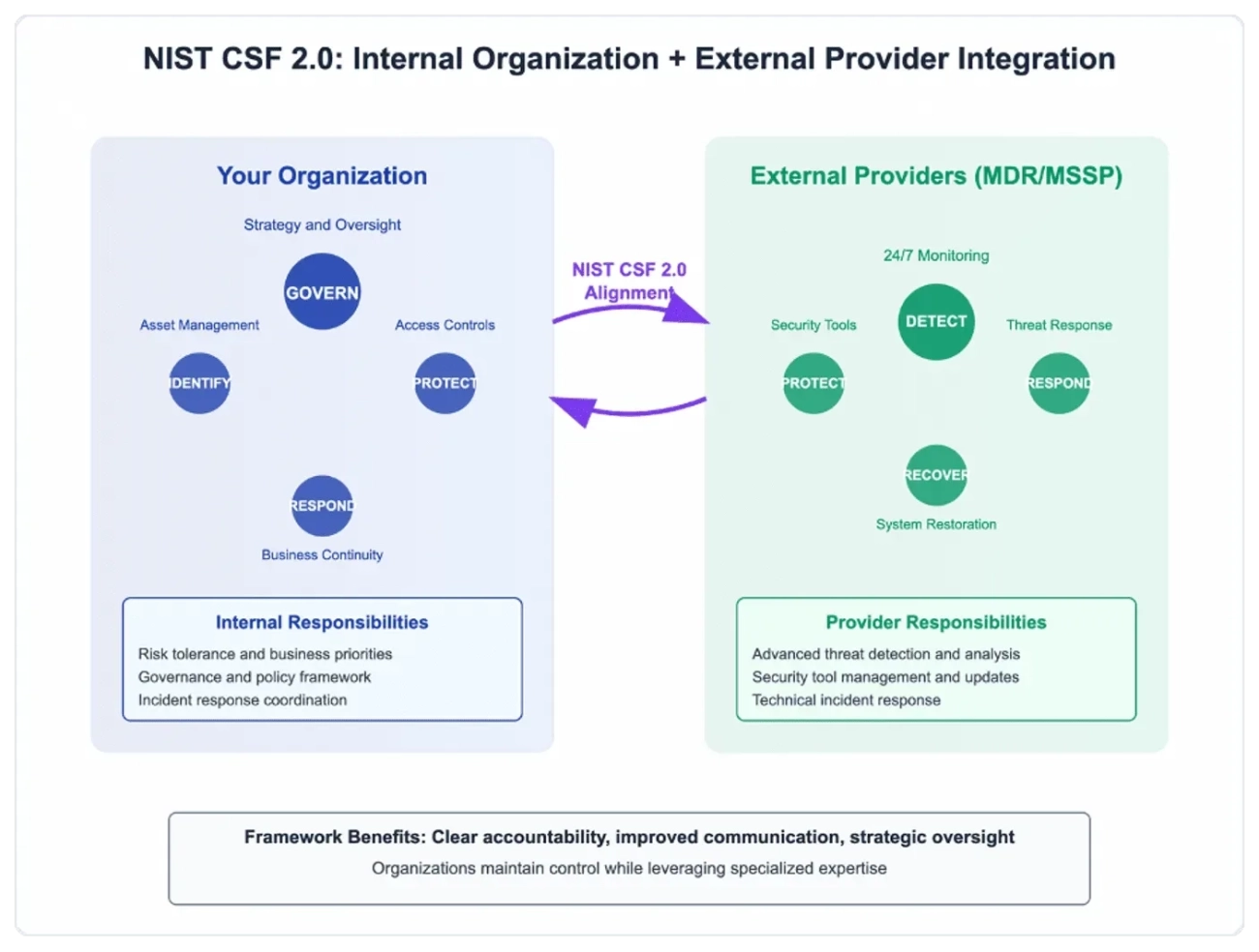 Many growing businesses rely on third-party cybersecurity providers to manage detection, response, and threat intelligence. NIST CSF 2.0 strengthens these relationships by giving you strategic oversight and measurable expectations.